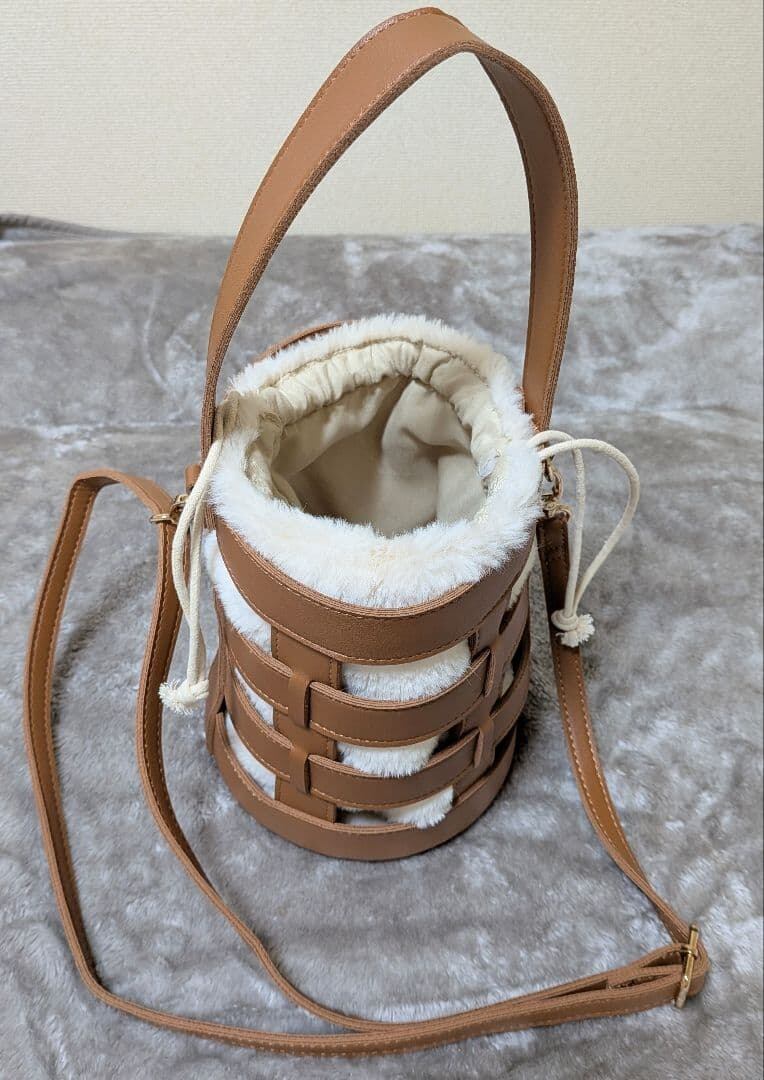 円筒型 ショルダーバッグ ブラウン フェイクファー 2way