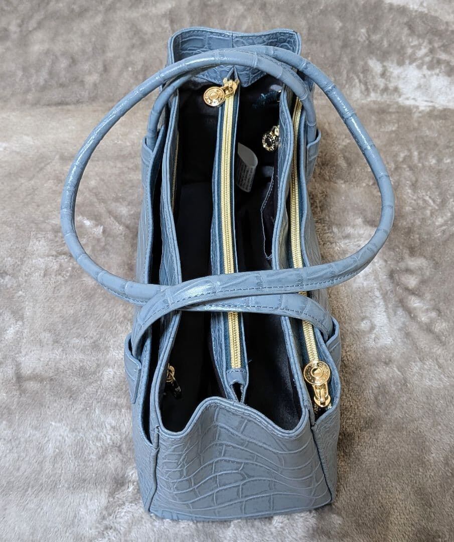 美品 クロコ型押し ハンドバッグ 2way ブルーグレー 高級感